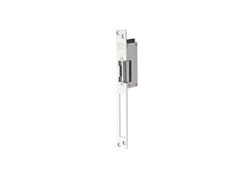 Deze waterdichte inbouw elektrische deuropener is speciaal voor buiten-toepassingen (bijv. poorten). De deuropener wordt tegenover de dagschoot van een mechanisch slot ingebouwd om deze te vergrendelen of te ontgrendelen. De lange sluitplaat heeft een uitsparing voor de nachtschoot, zodat deze mechanisch kan worden vergrendeld.