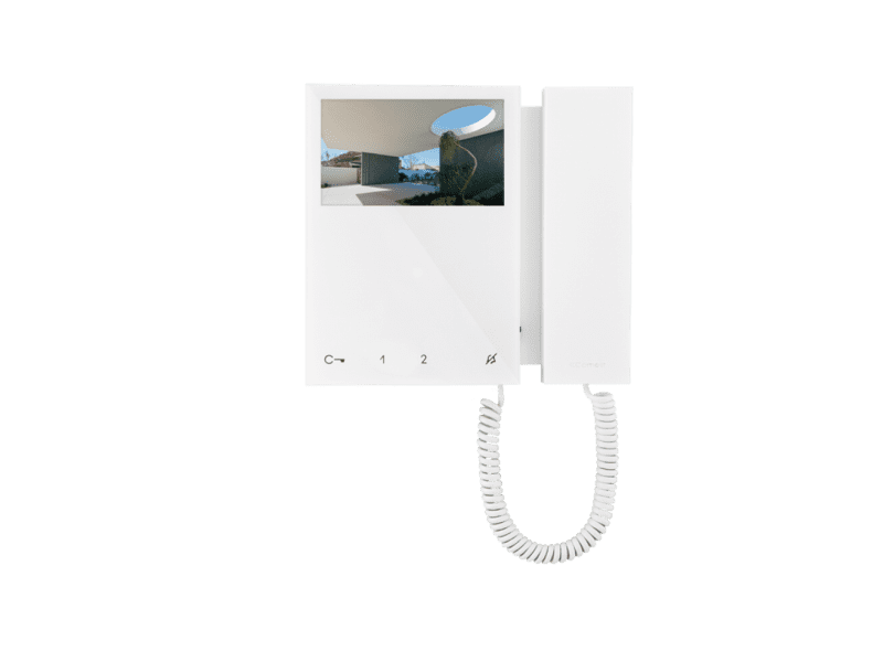 Kleurenmonitor heeft een hoorn en een 11 cm, zeer helder beeldscherm. De beltoon kan naar wens worden aangepast (keuze uit verschillende melodieën). Verder is de binnenunit standaard voorzien van 4 soft touch toetsen voor openen van de deur, beeldoproep (camerafunctie) en twee vrij te programeren functies. Het geluid van de hoord kan in drie niveau's ingesteld worden waardoor ook door personen met gehoorproblemen een duidelijk gesprek met de aanbeller gevoerd kan worden.